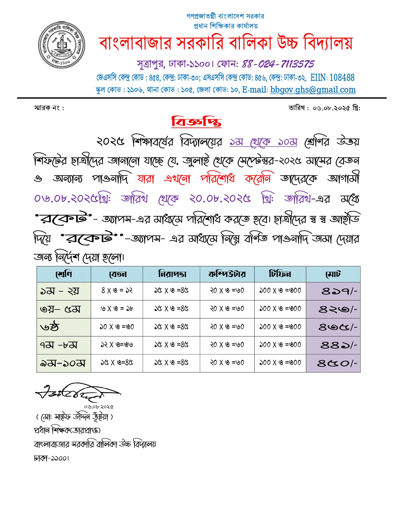 • জ্ঞানবিজ্ঞান তথ্যপ্রযুক্তির চরম সীমায় যখন গোটা পৃথিবী, ডিজিটাল বাংলাদেশ গড়ার প্রত্যয় দেশ যখন চলমান তখন বাংলাবাজার সরকারি বালিকা উচ্চবিদ্যালয়ের ক্ষুদ্রগণ্ডি থেকে আমাদের শিক্ষার্থীরাও উন্নয়নে করছে অংশ গ্রহণ।